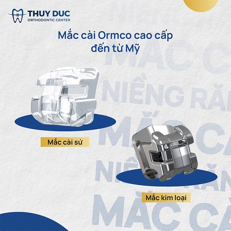 Đặc điểm: Tương tự mắc cài kim loại nhưng các mắc cài được làm bằng sứ, màu sắc gần giống với răng thật, giúp tăng tính thẩm mỹ.
