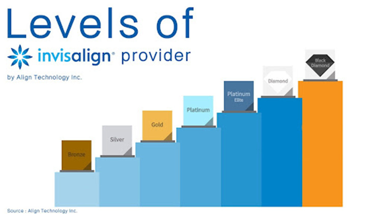 Theo Align Technology, các thứ hạng trong thang bậc của niềng răng Invisalign được xác định dựa trên số lượng ca điều trị trong một năm bởi một bác sĩ hoặc nhóm bác sĩ. Điều này không phụ thuộc vào kinh nghiệm chuyên môn hay tổng số ca bác sĩ đã trị liệu trước đó. Vậy nên có thể cùng một thứ hạng nhưng phòng khám hạng Diamond và bác sĩ hạng Diamond lại không hoàn toàn giống nhau.