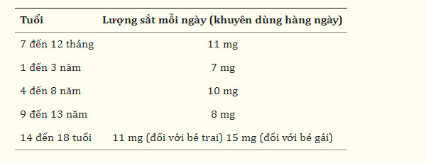 Tuy nhiên, nếu mẹ không đủ sữa mẹ cần tăng cường sắt cho bé bằng sữa công thức. Nhu cầu sắt của bé theo từng độ tuổi như sau: