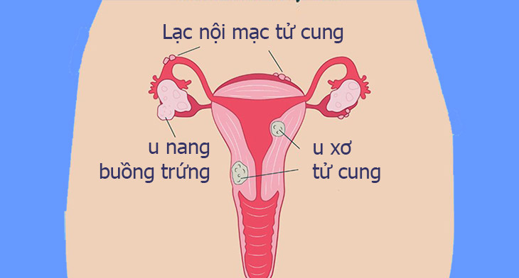 Điển hình nhất là u xơ tử cung và u nang buồng trứng với những cơn đau âm ỉ trong khoang chậu.