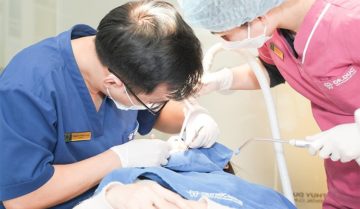Bác sĩ tiến hành khám tổng quan, chụp phim X – quang để kiểm tra tình trạng sức khoẻ răng miệng cho khách hàng.