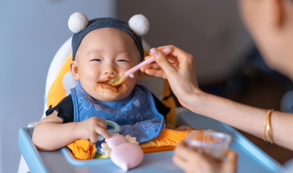 • Cho bé ăn trái cây nghiền (chuối, lê hấp, táo hấp)