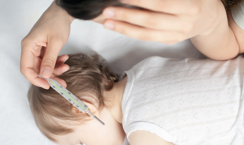 • Dùng nhiệt kế điện tử hoặc nhiệt kế đo tai/trán để kiểm tra thân nhiệt mỗi 4-6 tiếng, đặc biệt nếu trẻ có biểu hiện nóng sốt hoặc vã mồ hôi.