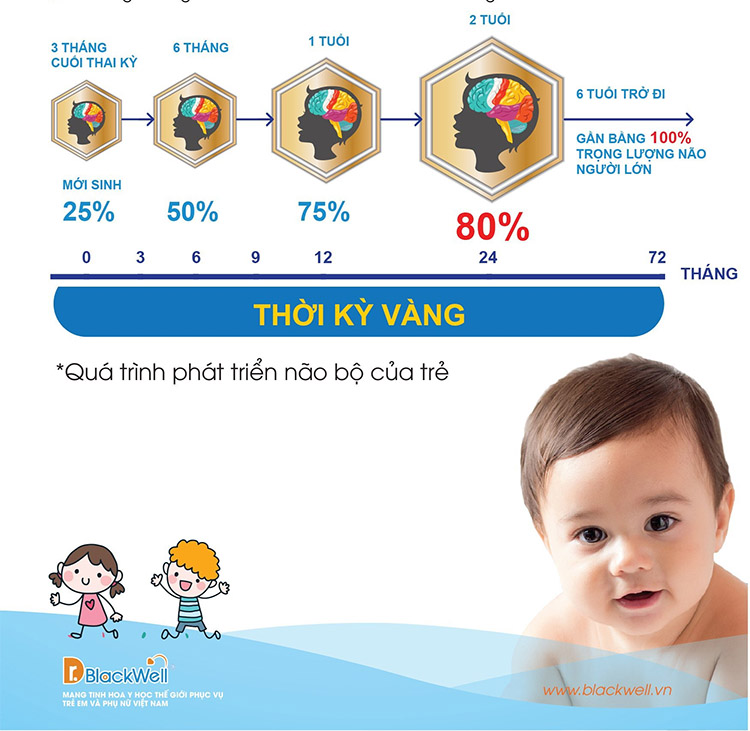 Từ 1 – 6 tuổi là GIAI ĐOẠN VÀNG phát triển não bộ của trẻ, vì vậy để bé thông minh hơn và lớn lên khỏe mạnh, mẹ nhớ bổ sung Dr.Blackwell DHA Drops cho con trong suốt thời gian này nhé.