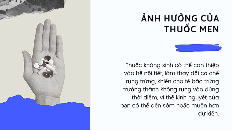 Thuốc có thể làm thay đổi chu kỳ kinh nguyệt của bạn, đó là điều chắc chắn và đã được giải thích. Bạn có thể tìm hiểu trong bài viết này Tại sao thuốc kháng sinh gây rối loạn kinh nguyệt?