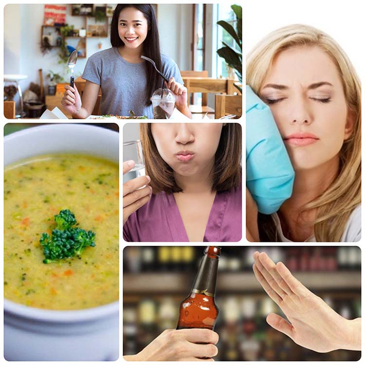 – Không uống rượu, bia, nước ngọt có gas, hút thuốc lá trong 24 giờ sau khi nhổ răng.