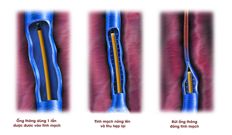 Trong quá trình điều trị, một sợi cáp có khả năng phát nhiệt từ sóng cao tần được đưa vào trong lòng tĩnh mạch. Năng lượng nhiệt từ sóng cao tần sẽ làm xơ hóa thành mạch, dẫn đến viêm và tắc nghẽn hoàn toàn tĩnh mạch, giúp loại bỏ tình trạng suy giãn.