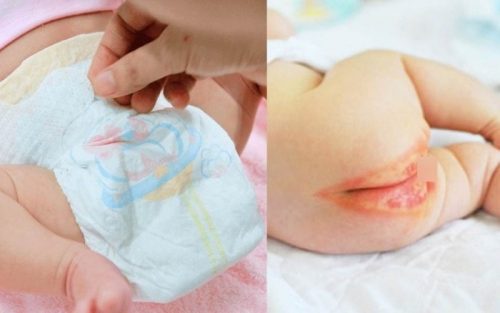 Việc mẹ dùng bỉm size kích thước hoặc mẹ quấn chật để bỉm không bị tung ra ngoài. Điều đó, vô tình khiến da của bé bị trầy xước hoặc nổi mẩn đỏ ở bộ phận sinh dục.